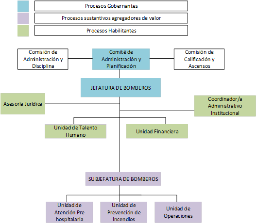 La estructura organizacional del Cuerpo de Bomberos Casimiro Farfán del cantón Bolívar, se alinea con su misión, visión, objetivos y valores; los cuales coadyuvan en la filosofía y enfoque de los servicios que se brindan con la finalidad de asegurar el ordenamiento orgánico.